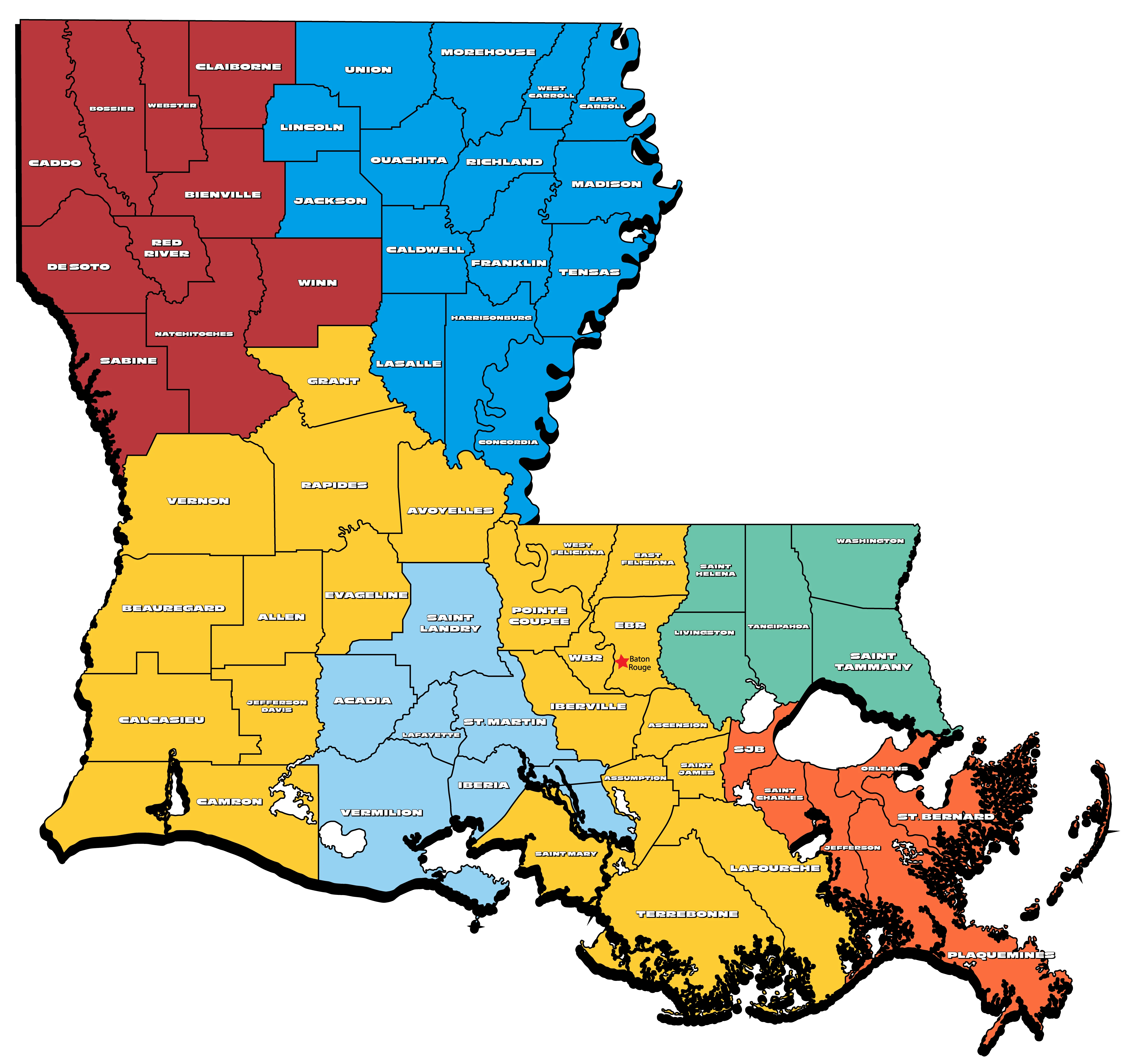 Baton Rouge, Houma, Lake Charles, Alexandria, and Leesville, LA